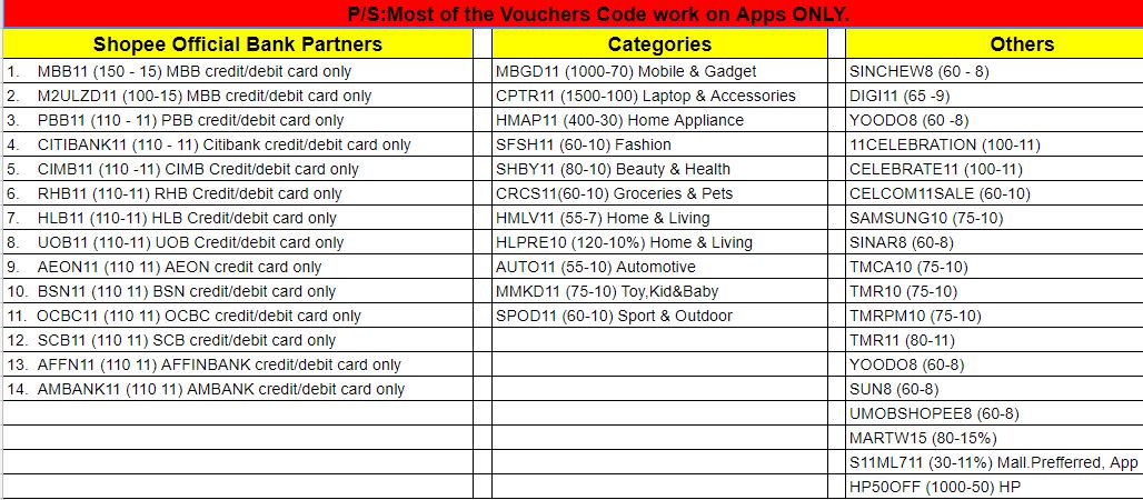 11.11 Big Sale 2018 Promo Codes: Shopee, Lazada, 11Streer etc