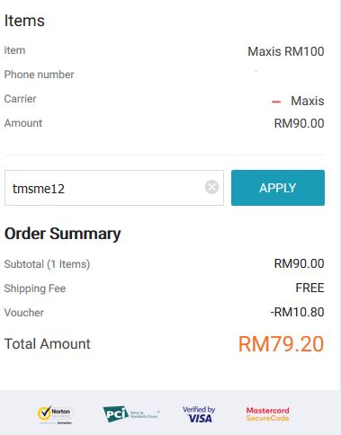 Promo Value : 12% off with no minimum spend Max RM15