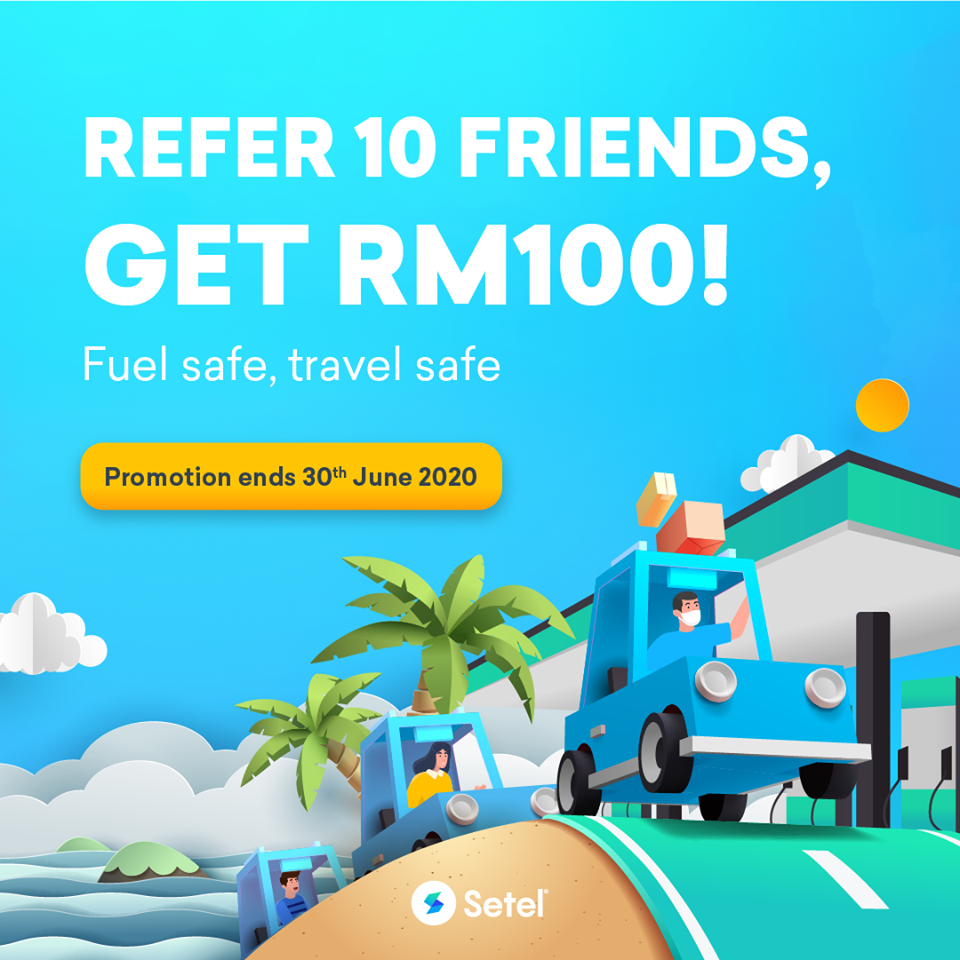 4. 10 successful registrations with your unique referral code during the promo period will earn you RM100 Setel petrol credit.