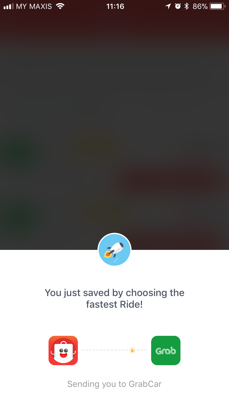 5. If you choose Grab, ShopBack will send you to Grab app. You will get RM0.20 cashback with this ride.